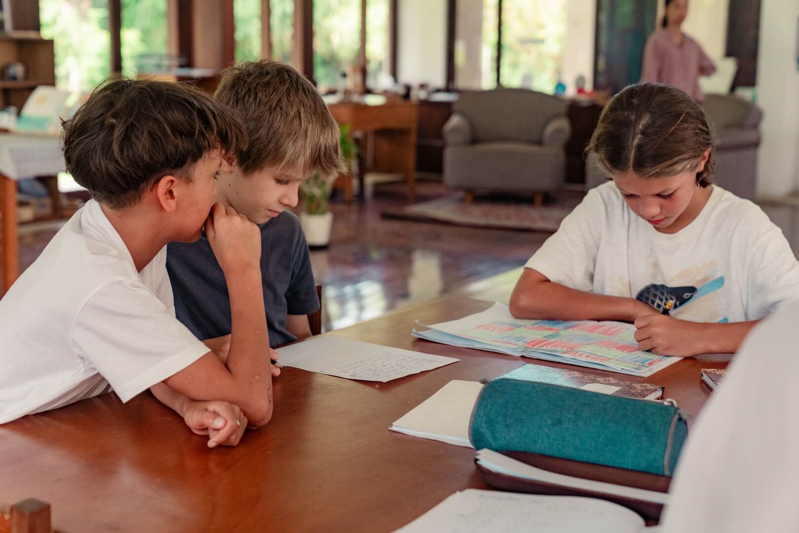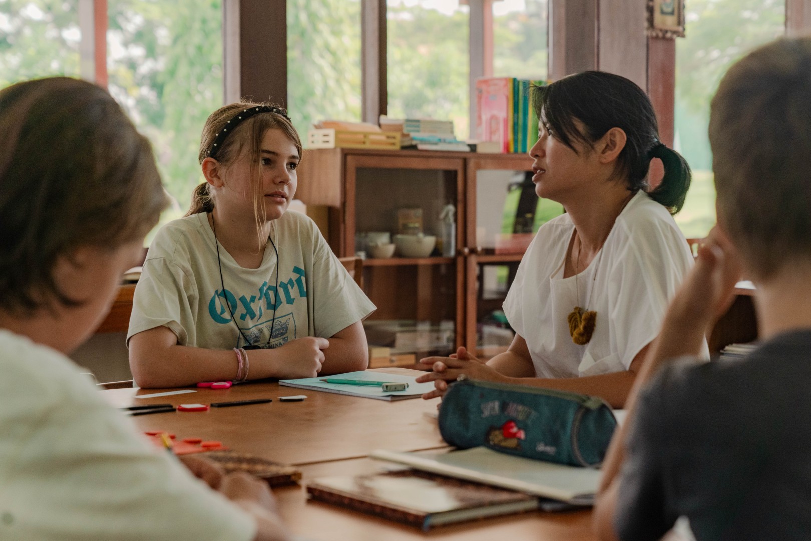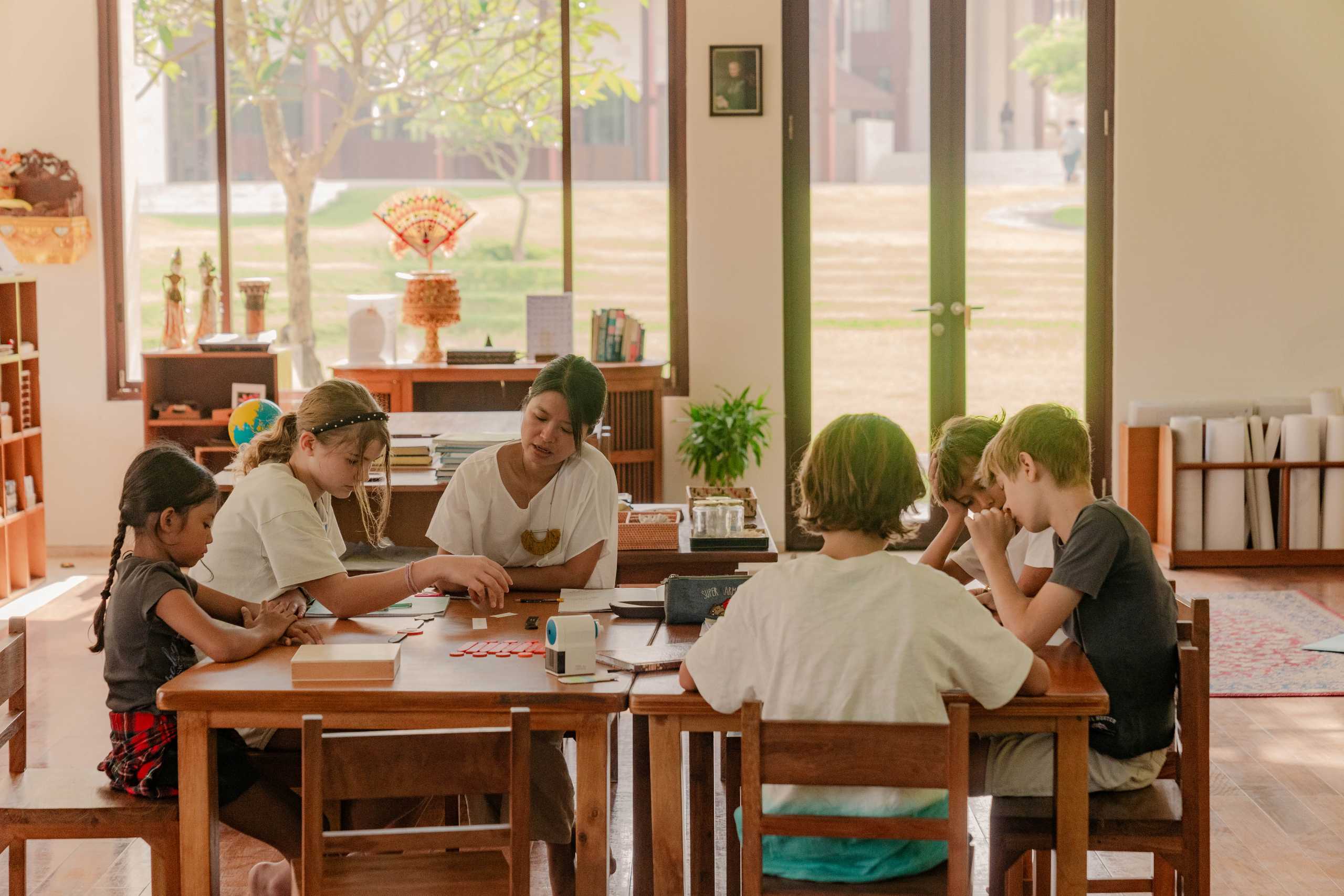 Social development is interwoven into all aspects of the curriculum. The academic programme is grounded in language, arts, mathematics, science and geography and enhanced by music, physical education, visual art, drama and the Indonesian language. This interdisciplinary academic programme enables studies in one area, such as Egyptian society, to cross over and inspire lessons in related subjects, such as geometry. Montessori-trained guides maintain their awareness of the strengths and challenges of each student through observation, and regularly meet one-on-one with children for conferences to ensure their continued progress.